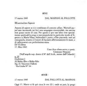 1 La risposta del Pallotti del medesimo giorno fu scritta nello spazio libero della lettera del Maspani , tra le parole “ Di V . S . Illma ” e la firma del mittente .