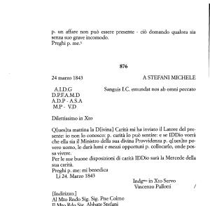 Q [ ues ] ta mattina la D [ ivina ] Carità mi ha inviato il Latore del presente : io non lo conosco : p . carità lo può sentire : e se IDDio vorrà che ella sia il Ministro della sua divina Provvidenza p . q [ ues ] to povero uomo , le darà lumi e mezzi opportuni p . collocarlo , onde possa vivere .