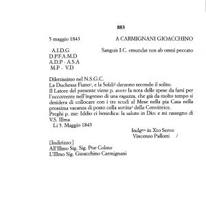 5 maggio 1843 A CARMIGNANI GIOACCHINO