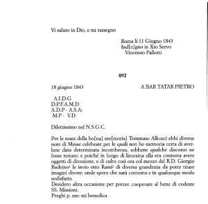 Roma li 11 Giugno 1843 Ind [ e ] gno in Xto Servo