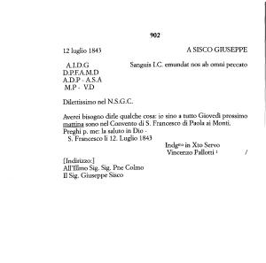 Preghi p . me : la saluto in Dio - S . Francesco li 12 . Luglio 1843