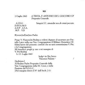 13 luglio 1843 A TESTA , P . ANTONIO DI S . GIACOMO CP