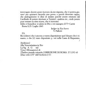 La Sig A G nel V [ en :] Monastero ] di [ Timbro postale rotondo :] DIREZIONE DI ROMA 27 LUG 43 [ Due volte il N ° dell ’ Archivio :] ( 3 )