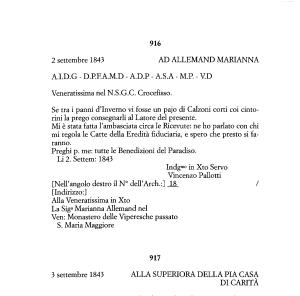 2 settembre 1843 AD ALLEMAND MARIANNA A . I . D . G - D . P . F . A . M . D - A . D . P - A . S . A - M . P . - V . D