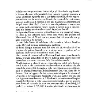 re la lettera : tengo preparati i 40 scudi , e gli dirò che in seguito della lettera , che esso vi ha ascritto [,] voi pensate p . questi quaranta a carico vostro : in riguardo poi ai 200 farete q [ ue ] llo , che in appresso crederete , ma intanto io combinerò che le rate della restituzione sieno di quattro scudi mensili , e non più di cinque da incominciarsi dal p . f . anno 1844 . del 1 . Gen : -con tale disposizione vi mantenete un luogo nelle circostanse future , poiché i parenti non si dimenticano mai di fare esercitare la carità al Sacerdote Fratello .