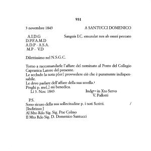 Tomo a raccomandarle l ’ affare del nominato al Posto del Collegio