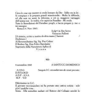 Vincenzo Pallotti [ A sinistra , scritto a matita da altra mano :] Santori / [ Indirizzo :]