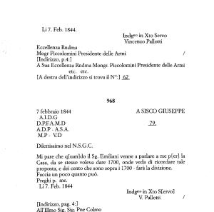 7 febbraio 1844 A SISCO GIUSEPPE A . I . D . G D . P . F . A . M . D 79 , A . D . P - A . S . A . M . P - V . D