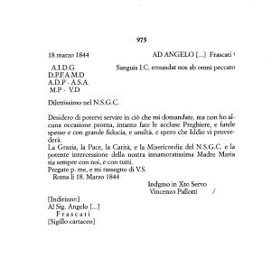 1 II nome del destinatario fu cancellato ; sotto la cancellatura si può soltanto decifrare : Al Sig . Angelo ... Frascati ed un timbro postale rotondo : DIREZIONE DI