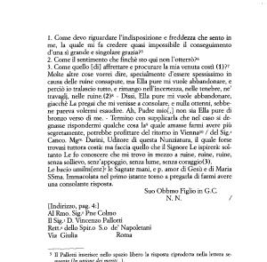 5 H Pallotti inserisce nello spazio libero la risposta riprodotta nella lettera seguente ( In unione dei meriti ...).