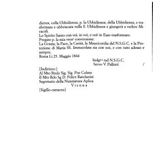 La Grazia , la Pace , la Carità , la Misericordia del N . S . G . C . e la Protezione di Maria SS . Immacolata sia con noi , e con tutti adesso e