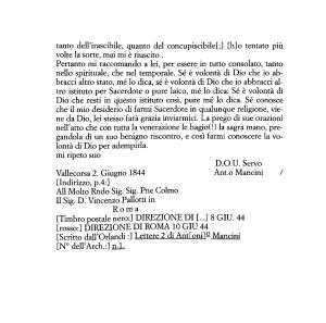 [ Timbro postale nero :] DIREZIONE DI [...] 8 GIU . 44 [ rosso :] DIREZIONE DI ROMA 10 GIU 44 [ Scritto dall ’ Orlandi :] Lettere 2 di Ant [ onilg Mancini
