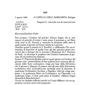 3 agosto 1844 A CAPELLI CARLO , BARNABITA , Bologna