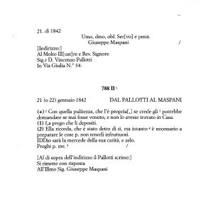 1 La risposta del Pallotti fu scritta nello spazio libero della lettera del Maspani .