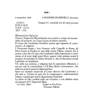 Ebrei hanno la Predica in una delle nostre Chiese , temerei che si avesse a dire che il Corpo dei Carabinieri dalla Superiorità è considerato al di sotto degli stessi Ebrei , quante volte andasse avanti il progetto di escludere le Chiese divisate12 p . dare le Istruzioni morali