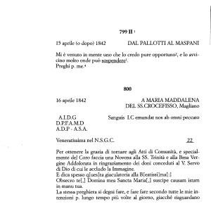 Per ottenere la grazia di tornare agli Atti di Comunità , e specialmente del Coro faccia una Novena alla SS . Trinità e alla Bma Vergine Addolorata in ringraziamento dei doni conceduti al V . Servo di Dio di cui le accludo la Immagine .
