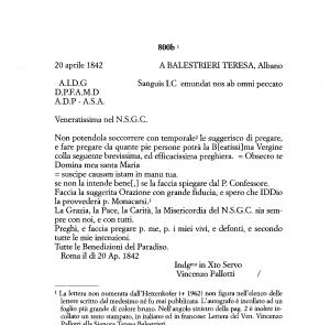 Lettre du Vén . Vincent Pallotti à Madame Térèse Balestrieri .