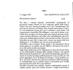 Coll ’ affitto cosa si ottiene ? Senza questo è da presumersi che la donna agisca p . la vendita ; ma con l ’ affitto è da temersi che non (?) se ne dia carico avendo una mesata .