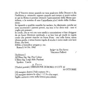 Io credo , che se voi con vera umiltà e sommissione vi fate diriggere da un buon Direttore spirituale , e se fate ben gli studii in regola credo che potrete riuscire un buon Prete - ma colla fretta , senza idonea guida , e senza buona regola di studio è meno male non farsi