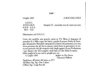 Iddio pagherà la sua carità : preghi per me . 4 . T . ugl io 1845 Indgmo in Xto Servo