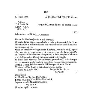 Roma 12 . Luglio 1845 Indg “>° in Xto Servo V . Pallotti /