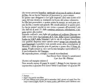 Scalzo in S . M . - della Vittoria [,] già in età di ordinarsi Sacerdote7 con qualche dispensa entro questo anno , 8 prego Lei ottenerlo dai suoi SuperioriLl poiché [,] non avendo avuto altra consolazione al Mondo [,] abbia q [ ues ] ta pria di partirne e possa dire il Nunc dimittis . Preghi sempre p . me e per la mia famiglia e spe [ cialmen ] te p . il raw [ edimen ] to del Traviato .