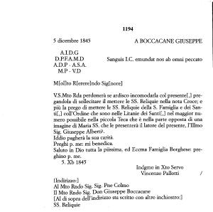 Saluto in Dio tutta la piissima , ed Eccma Famiglia Borghese : preghino p . me . 5 . Xb 1845