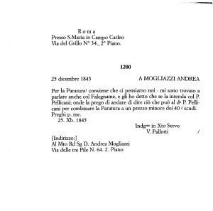 Per la Paratura1 conviene che ci pensiamo noi - mi sono trovato a parlare anche col Falegname , e gli ho detto che se la intenda col P . Pellicani ; onde la prego di andare di dire ciò che può al d ° P . Pellicani per combinare la Paratura a un prezzo minore dei 40 12 scudi .