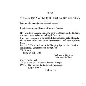 19 febbraio 1846 A VANNICELLI LUIGI , CARDINALE , Bologna