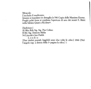 Londra [ Due timbri postali ; leggibili sono due volte le cifre :] 1846 [ Nell ’ angolo sup . a destra della la pagina la cifra :] 1