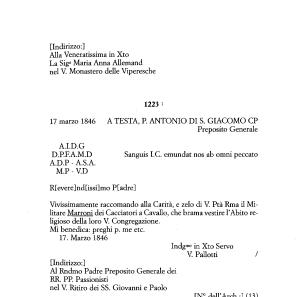 17 marzo 1846 A TESTA , P . ANTONIO DI S . GIACOMO CP