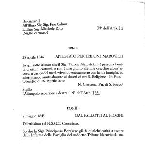 28 aprile 1846 ATTESTATO PER TRIFONE MAROVICH