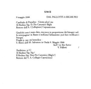 9 maggio 1846 DAL PALLOTTI A BIGHI PIO