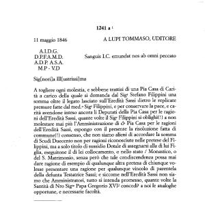 L ’ originale deve trovarsi in un archivio del Vaticano . - Come le lettere n ° 1146a e n ° 1152a , anche questa n ° 1241a tratta l ’ affare della eredità Susanna Sassi .