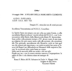 Pallotti al Solato della Margarita . Il contenuto e lo stile della lettera del 14 maggio 1846 fanno presupporre qualche contatto anteriore a quella data .