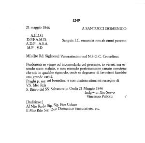 V . S . Mto Rda S . Ritiro del SS . Salvatore in Onda 21 Maggio 1846
