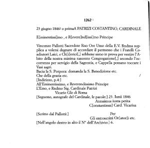 23 giugno 184612 o primaA PATRIZI COSTANTINO , CARDINALE E [ minentissi ] mo , e R [ evere ] nd [ issi ] mo Principe