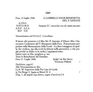 Fara , 13 luglio 1846 A GABRIELLI SUOR BENEDETTA