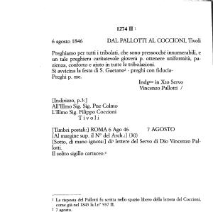 1 La risposta del Pallotti fu scritta nello spazio libero della lettera del Coccioni , come già nel 1843 la l . n ° 937 IL