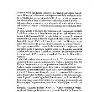sa stessa , ed in pari tempo vennero autorizzati i Cappellani Brandimarte Giuseppe , e Giovanni attuali possessori delle medesime a farne la vendita pel prezzo di scudi 1200 . E ,] con facoltà di trasportarlo e rinvestirlo in beni stabili o censi nel archidiocesi di Fermo .