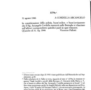2 Nello schedario di A . Faller si trova , riguardo al testo n ° 1279a , la citazione seguente : " Stigli [ mobili e arredi ] della Bottega a S . Giovanni della Malva n . 9 ... che si hanno in affitto dal Sig . Arcangelo Cordella unitamente al locale ”. L ’ affitto viene menzionato anche da Angelo Palombi nella sua deposizione nel Proc . Apost ., £ 620 : ” 11 padre [ di Vincenzo Pallotti ], che era mercante pizzicagnolo ... lo aveva lasciato erede di tre pizzicherie , qui in Roma , una a San Giovannino della Malva , una al Vicolo del Moro , e la terza nelle vicinanze del Palazzo Spada .