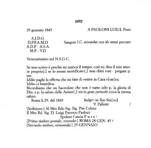Roma li 29 . del 1845 Indgmo in Xto Ser [ vo ] V . Pallotti /