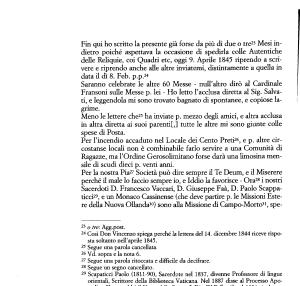 Fin qui ho scritto la presente già forse da più di due o tre23 Mesi indietro poiché aspettava la occasione di spedirla colle Autentiche delle Reliquie , coi Quadri etc , oggi 9 . Aprile 1845 riprendo a scrivere e riprendo anche alle altre inviatemi , distintamente a quella in data il dì 8 . Feb . p . p . 24
