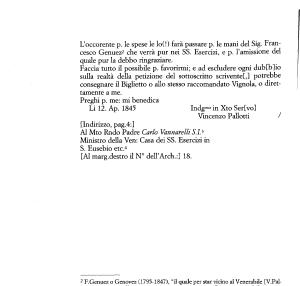 L ’ occorente p . le spese le lo ( !) farà passare p . le mani del Sig . Francesco Genuez2 * che verrà pur nei SS . Esercizi , e p . l ’ amissione del