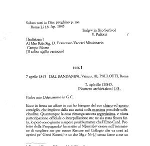 7 aprile 1845 DAL RANDANINI , Vienna , AL PALLOTTI , Roma