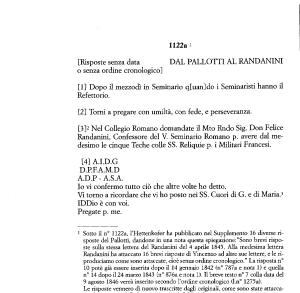 1 Sotto il n ° 1122a , l ’ Hettenkofer ha pubblicato nel Supplemento 16 diverse risposte del Pallotti , dandone in una nota questa spiegazione :” Sono brevi risposte sulla stessa lettera del Randanini del 4 aprile 1845 . Alla medesima lettera