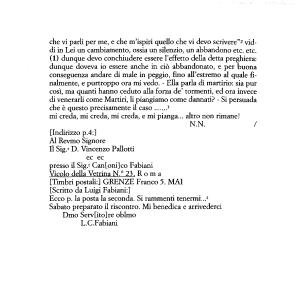 2 Nella l . n ° 1053 si trovano le parole :”.. pregherò la Madre delle Misericordie che ella vi parli al cuore ”.