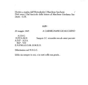 1 Nell ’ edizione dell ’ Hettenkofer , una parte di questa lettera fu pubblicata due volte : sotto il 20 maggio 1845 ( n ° 1129 ) e sotto il20 maggio 1849 ( n ° 1570 ). La missiva è infatti dell ’ anno 1849 e sarà riprodotta al n ° 1570 .