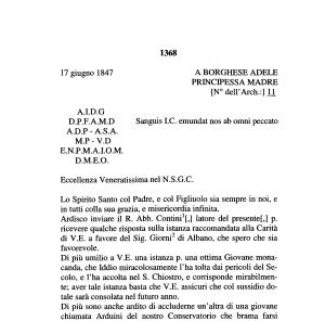 ricevere qualche risposta sulla istanza raccomandata alla Carità di V . E . a favore del Sig . Giorni12 di Albano , che spero che sia