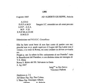 4 agosto 1847 AD ALBERTI GIUSEPPE , Ariccia
